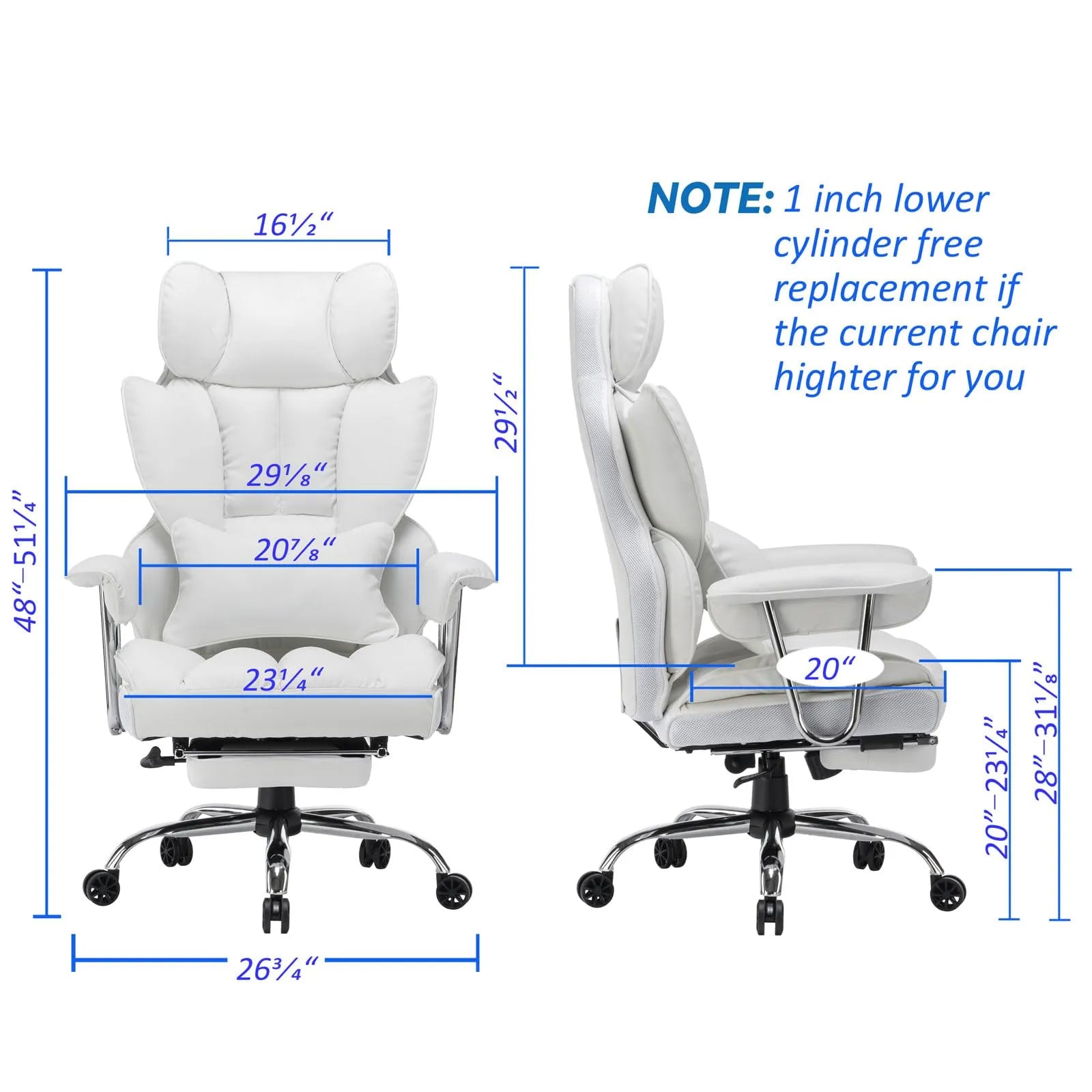 - 【Designed for big and tall】Say goodbye to discomfort and hello to a chair that understands your needs. Our excutive chair boasts a robust construction capable of handling up to 500 pounds. The thickened metal chassis and SGS 4 gas rod ensure stability and long-lasting performance, making it a reliable companion for your daily grind. The generously-sized seat cushion, equipped with an elastic spring pack, not only provides ample space but also ensures optimum support for extended periods of use