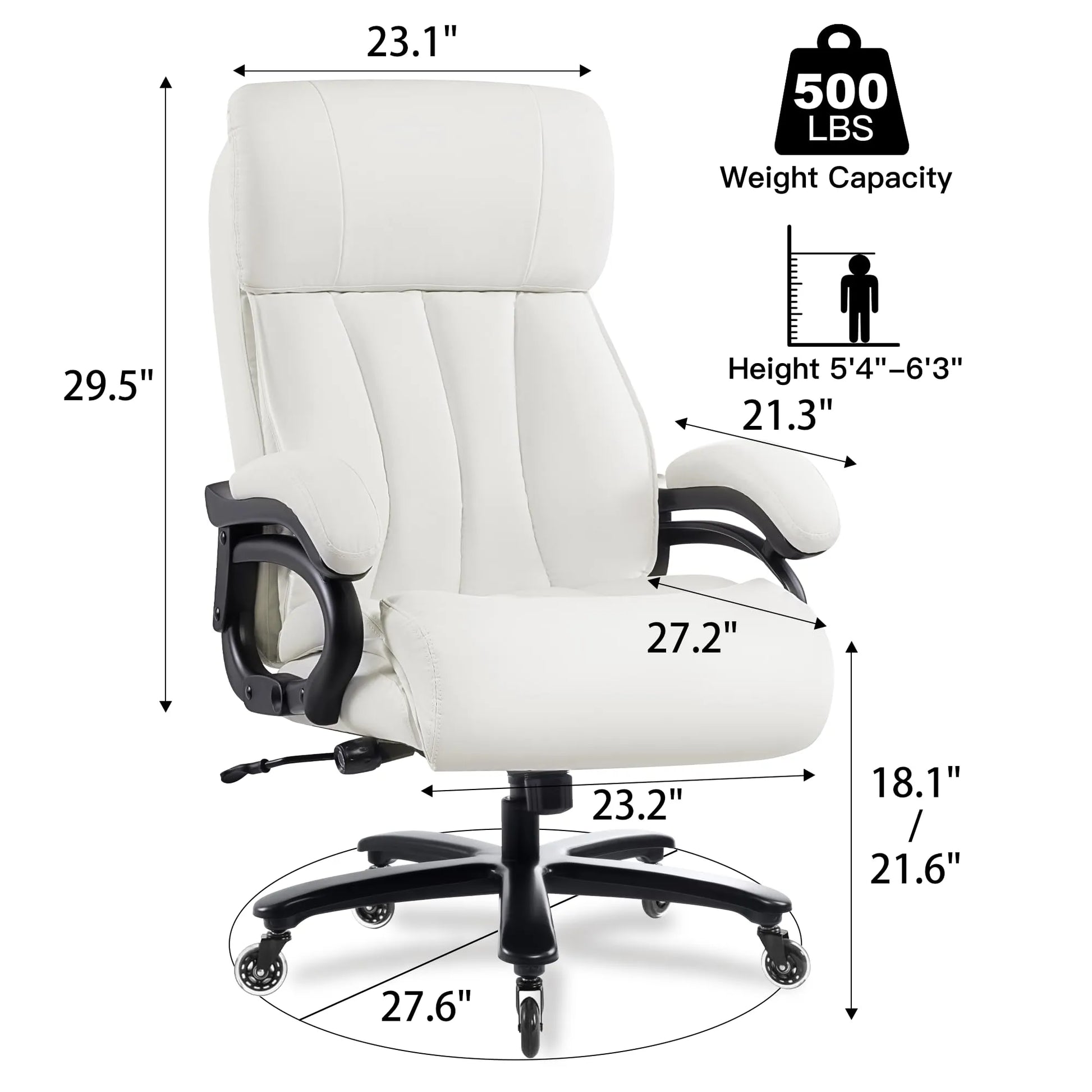 - 【Designed for big and tall】Say goodbye to discomfort and hello to a chair that understands your needs. Our excutive chair boasts a robust construction capable of handling up to 500 pounds. The thickened metal chassis and SGS 4 gas rod ensure stability and long-lasting performance, making it a reliable companion for your daily grind. The generously-sized seat cushion, equipped with an elastic spring pack, not only provides ample space but also ensures optimum support for extended periods of use
