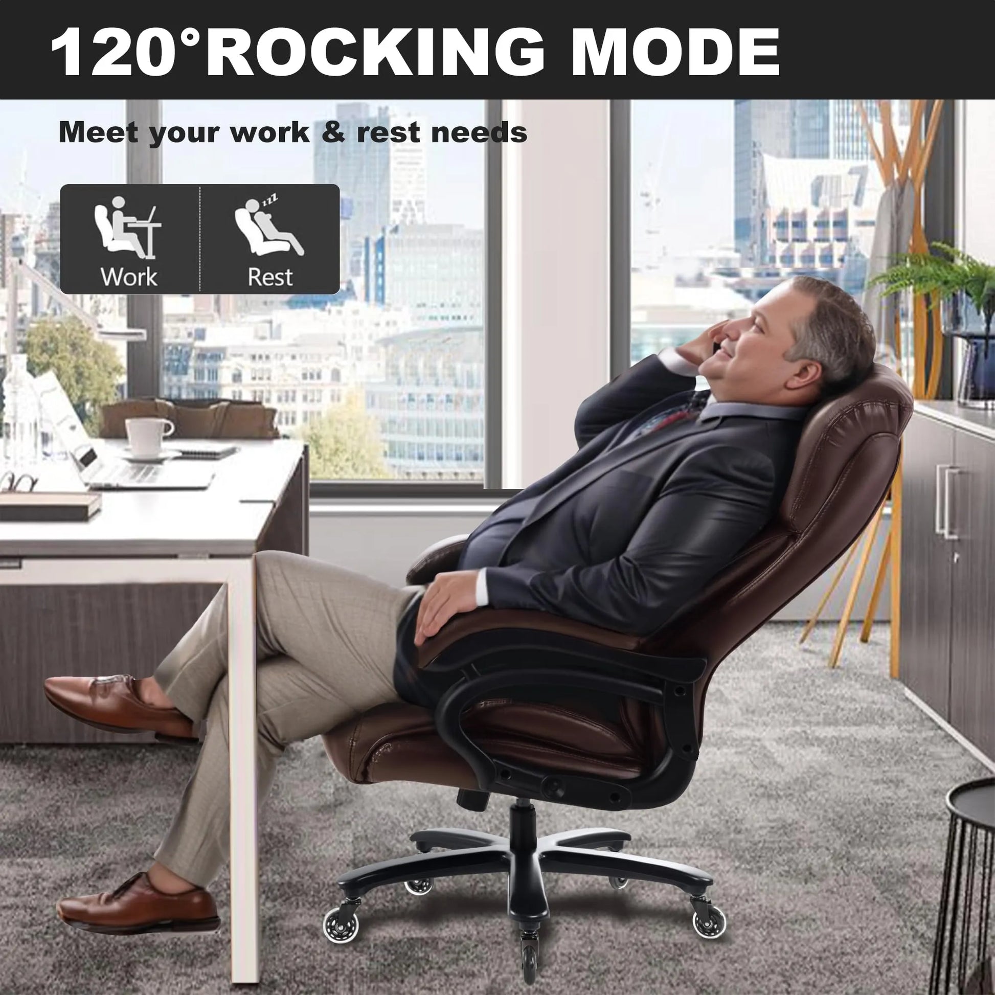 - 【Designed for big and tall】Say goodbye to discomfort and hello to a chair that understands your needs. Our excutive chair boasts a robust construction capable of handling up to 500 pounds. The thickened metal chassis and SGS 4 gas rod ensure stability and long-lasting performance, making it a reliable companion for your daily grind. The generously-sized seat cushion, equipped with an elastic spring pack, not only provides ample space but also ensures optimum support for extended periods of use