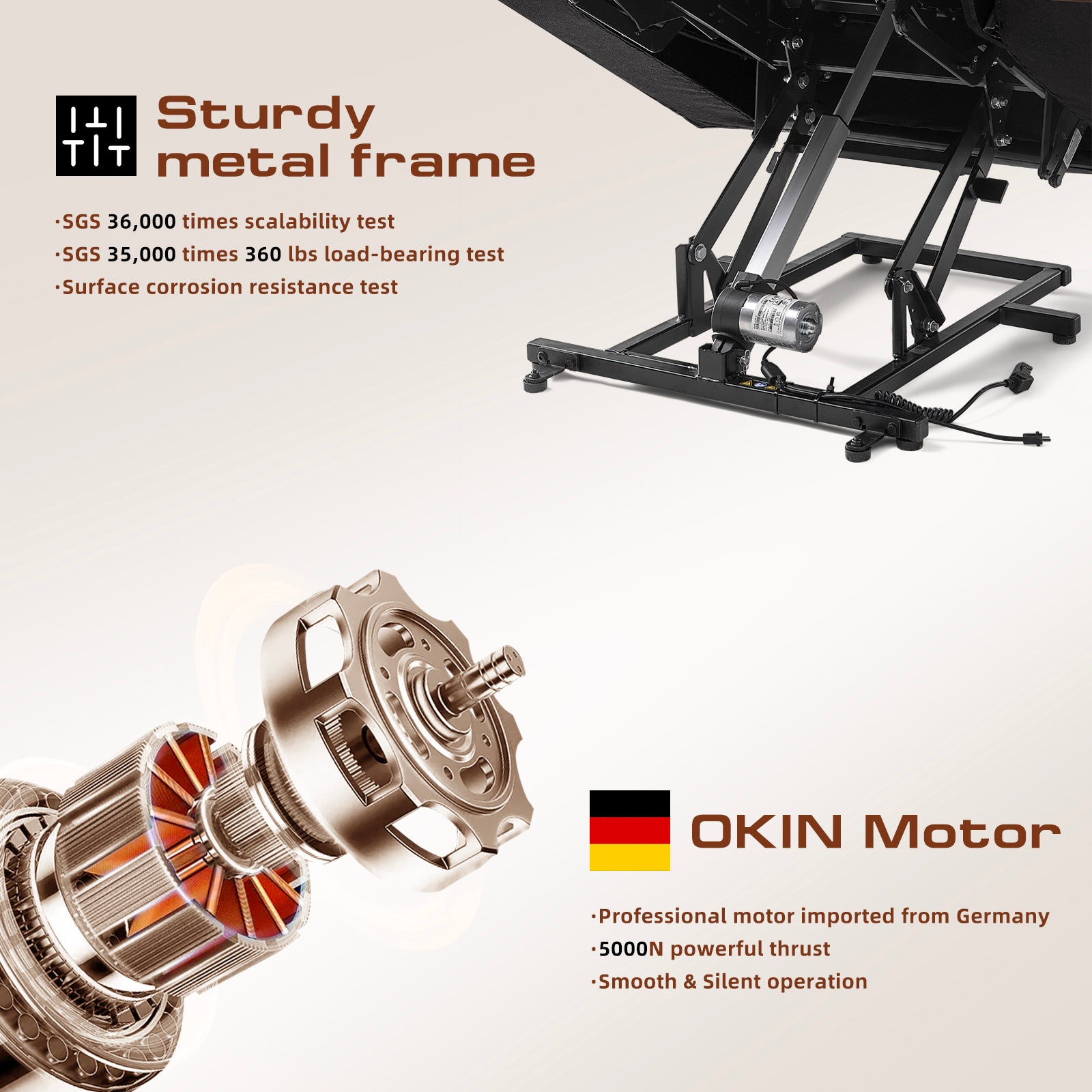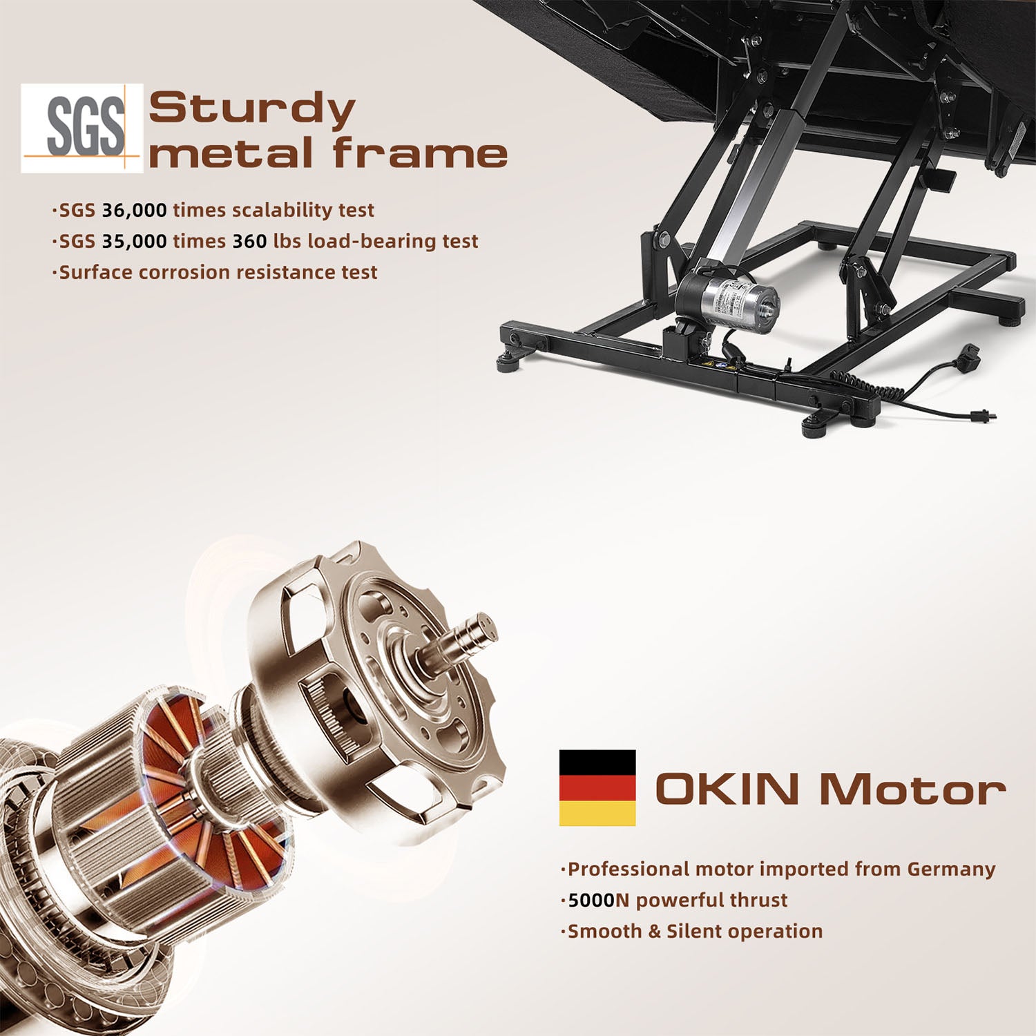 - 【Adjustable to Any Position】Power Lift Recliner Adjust to Any Angle You Need(45°-165°), to meet your different needs, like reading a book, watching TV, going to bed, or getting up for leaving. Our lift chairs are equipped with a lift remote control, which Avoids the issue of not being able to reach the lift button on the armrest when lying down. Additionally, Based on SGS testing, Button replacing the remote control resulted in a 72% decrease in chair malfunction rates.