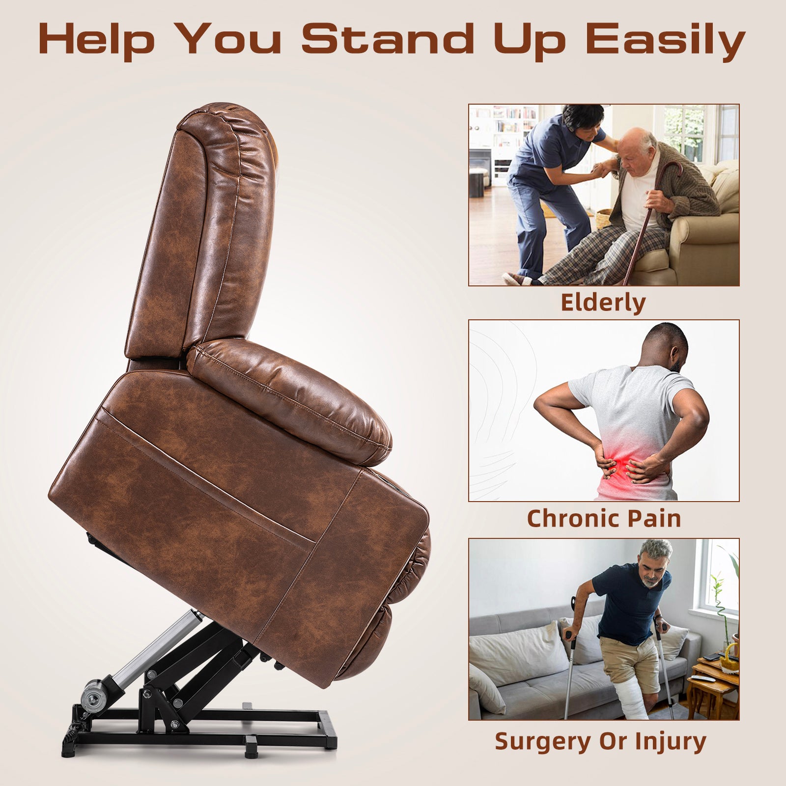 Cfvyne Large Power Lift Chairs Recliners for Elderly with Heated and Massage, Overstuffed Adjustable Lift Chairs, 3 Positions, Breathable Leather, USB-A and USB-C, Cup Holder, Side Pocket