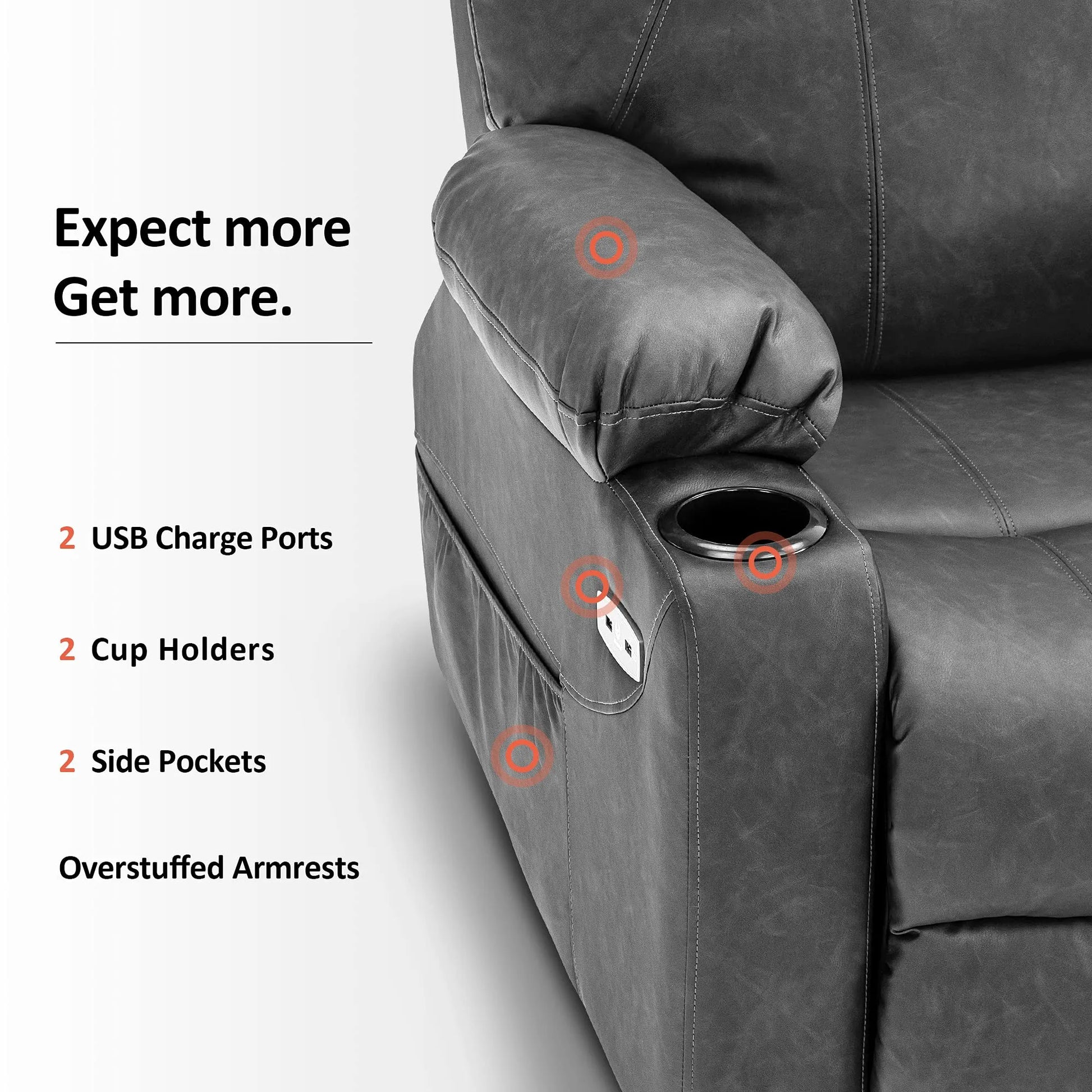 Electric Power Lift Recliner Chair Sofa with Massage and Heat for Elderly,Gray
