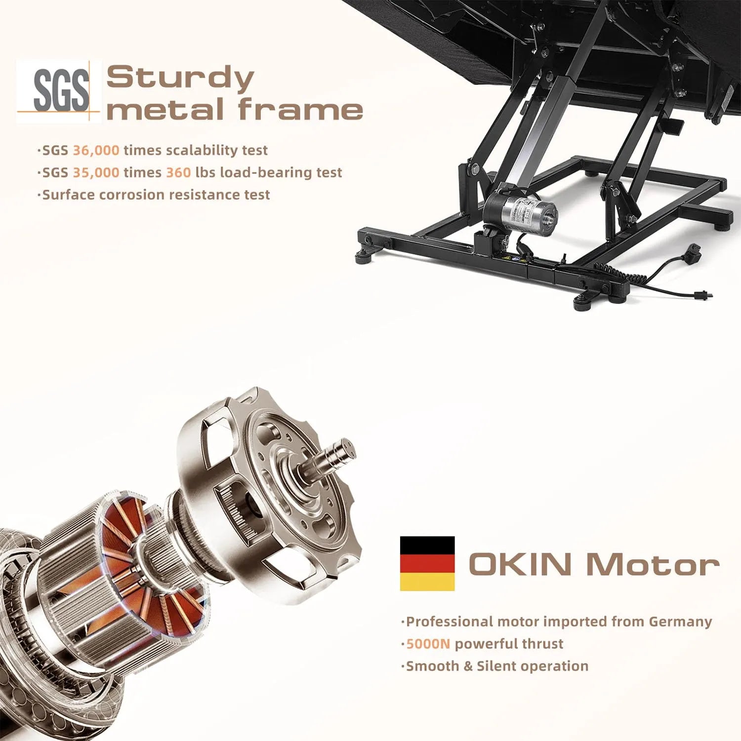 - 【Adjustable to Any Position】Power Lift Recliner Adjust to Any Angle You Need(45°-165°), to meet your different needs, like reading a book, watching TV, going to bed, or getting up for leaving. Our lift chairs are equipped with a lift remote control, which Avoids the issue of not being able to reach the lift button on the armrest when lying down. Additionally, Based on SGS testing, Button replacing the remote control resulted in a 72% decrease in chair malfunction rates.