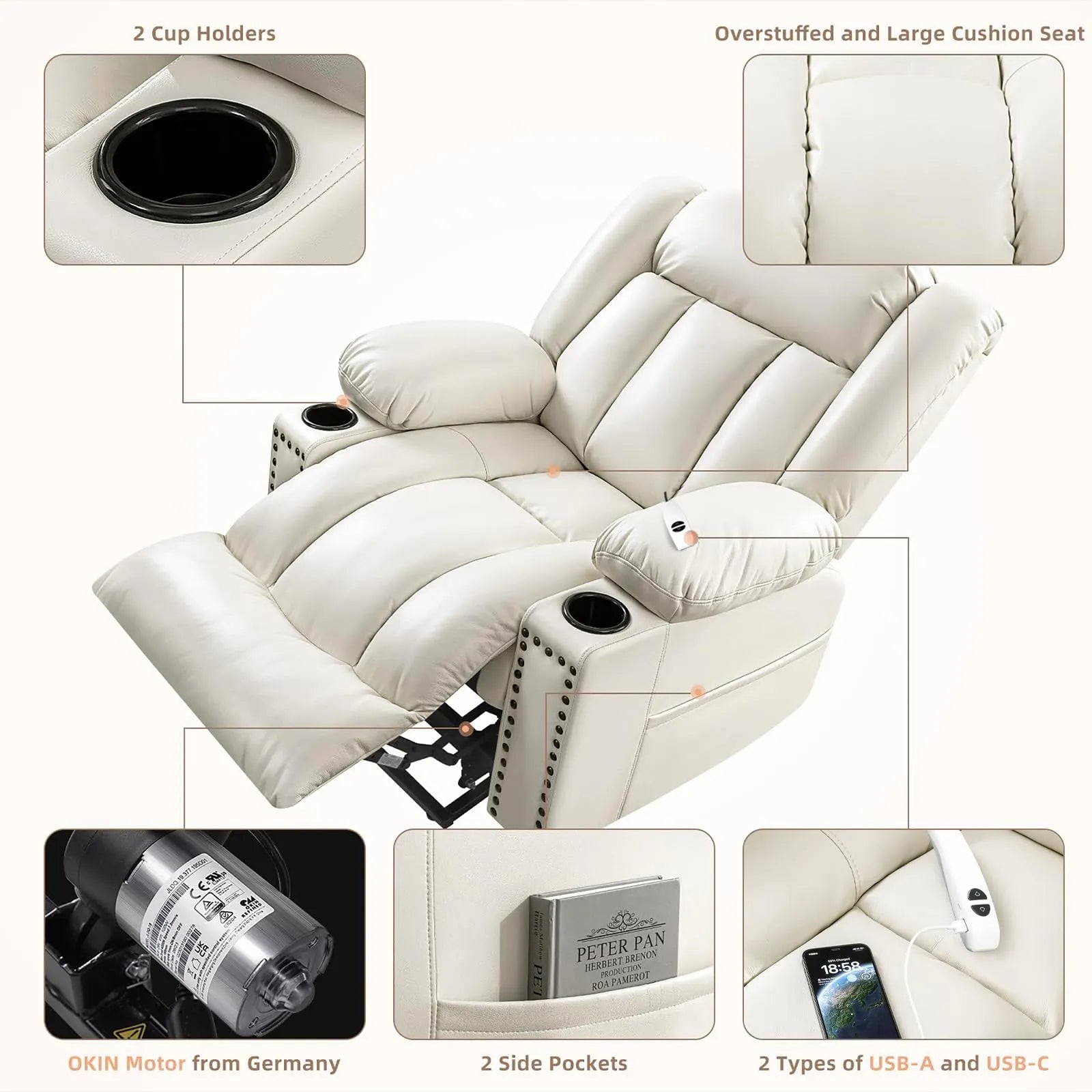 Large Power Lift Chairs Recliners for Elderly with Heat and Massage Set of 2, Breathable Leather, USB-A USB-C, Cup Holder, Side Pocket, Beigi