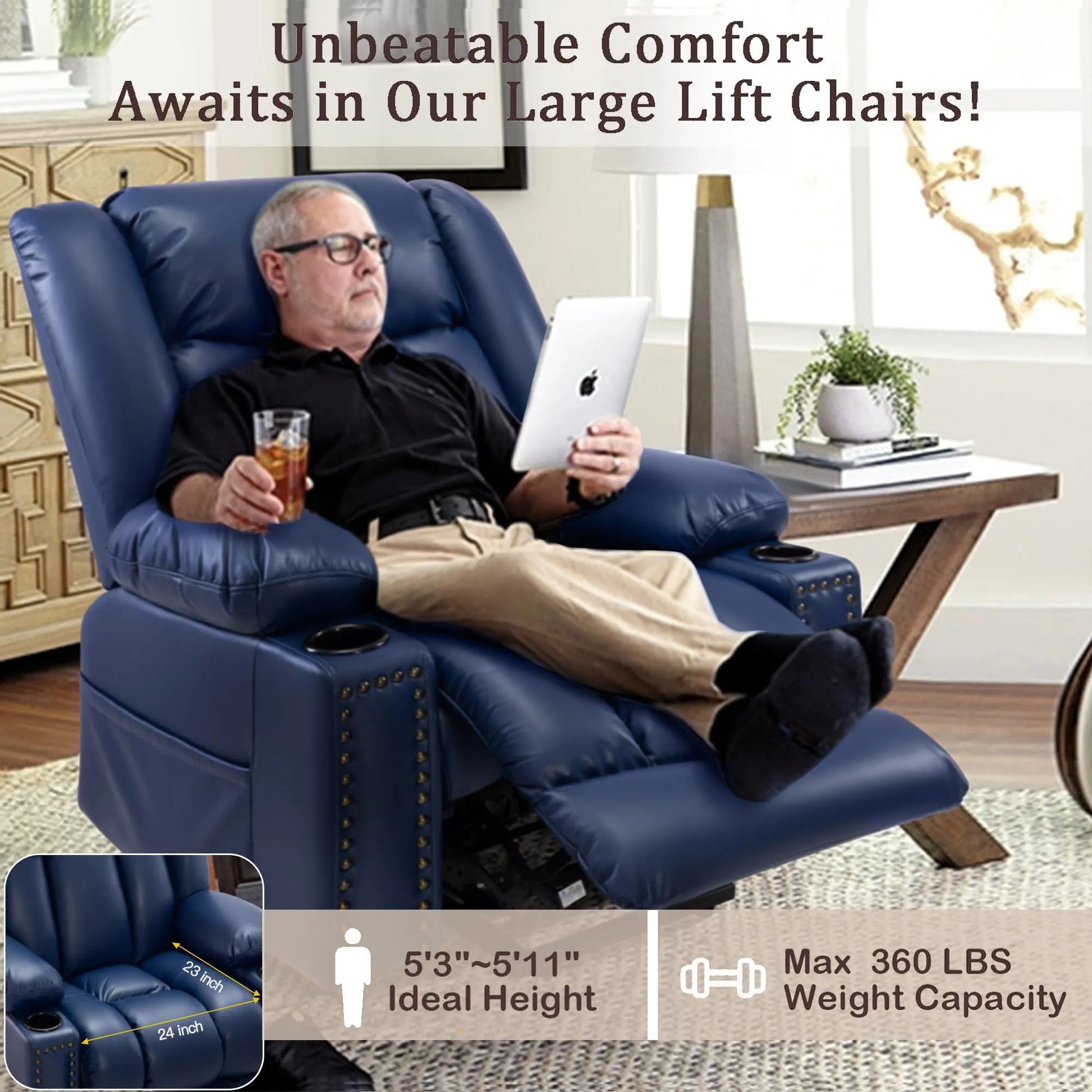 Large Power Lift Chairs Recliners for Elderly with Heat and Massage Set of 2, Breathable Leather, USB-A USB-C, Cup Holder, Side Pocket, Blue