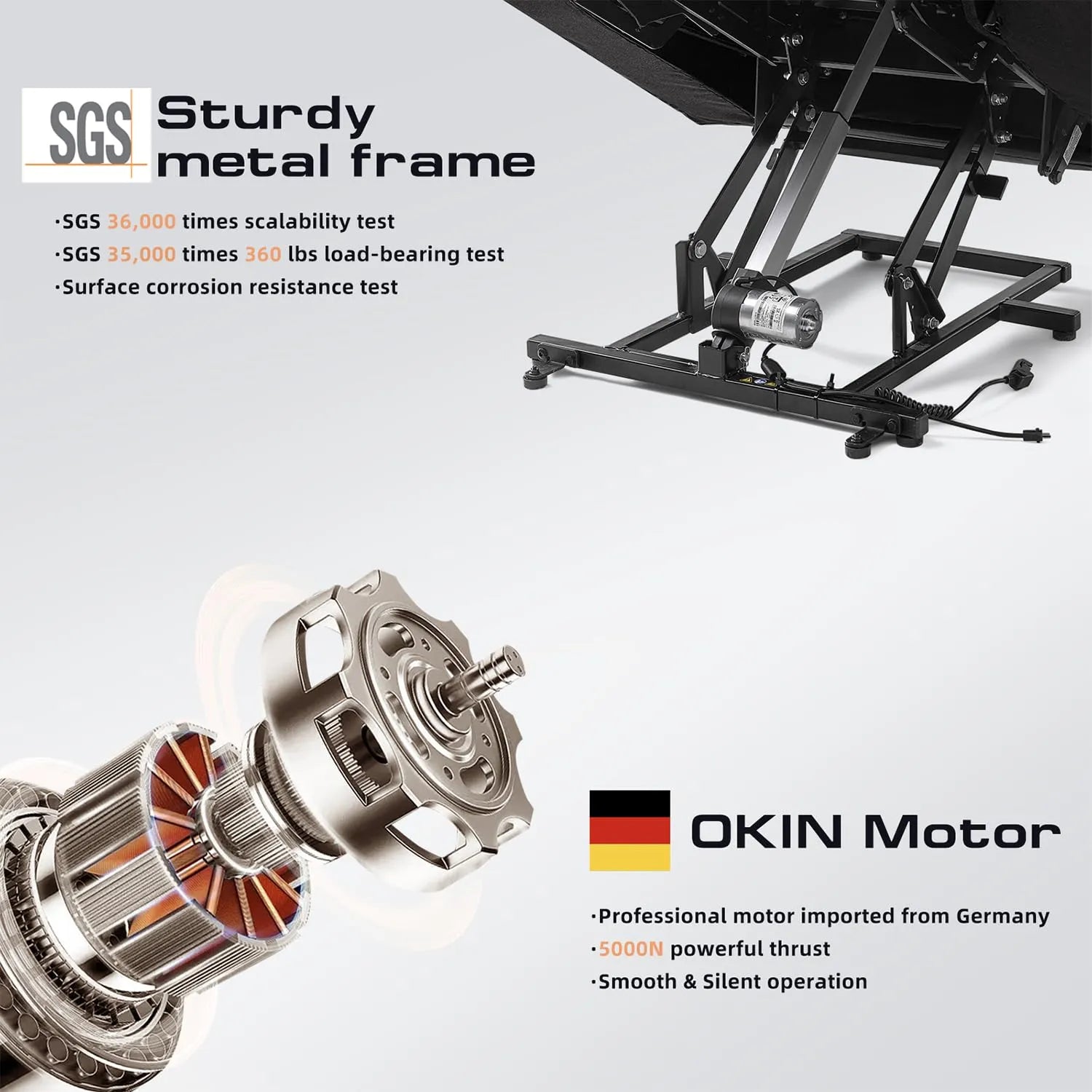 - 【Adjustable to Any Position】Power Lift Recliner Adjust to Any Angle You Need(45°-165°), to meet your different needs, like reading a book, watching TV, going to bed, or getting up for leaving. Our lift chairs are equipped with a lift remote control, which Avoids the issue of not being able to reach the lift button on the armrest when lying down. Additionally, Based on SGS testing, Button replacing the remote control resulted in a 72% decrease in chair malfunction rates.